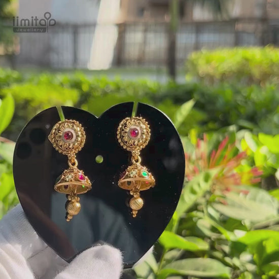 Complete your ethnic look with the timeless beauty of these stunning imitation jhumka earrings! 💫🌺