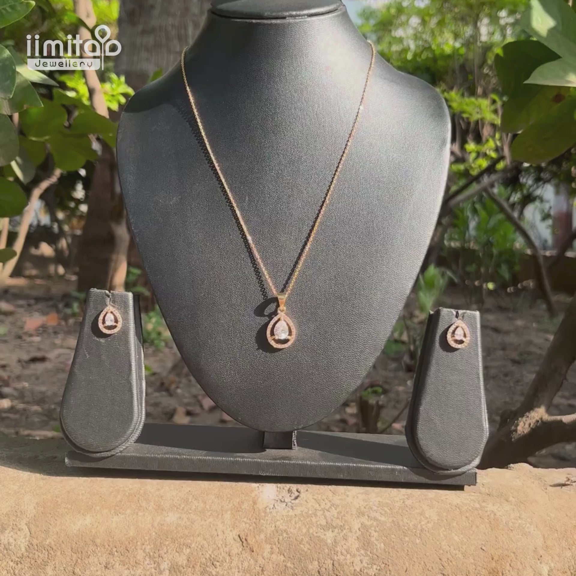 Add a touch of classic sophistication to your style with this beautiful imitation pendant set, featuring a graceful teardrop-shaped pendant and matching earrings. Set in a luxurious gold-plated finish with sparkling stone embellishments, this set is perfect for festive celebrations, weddings, and formal occasions.