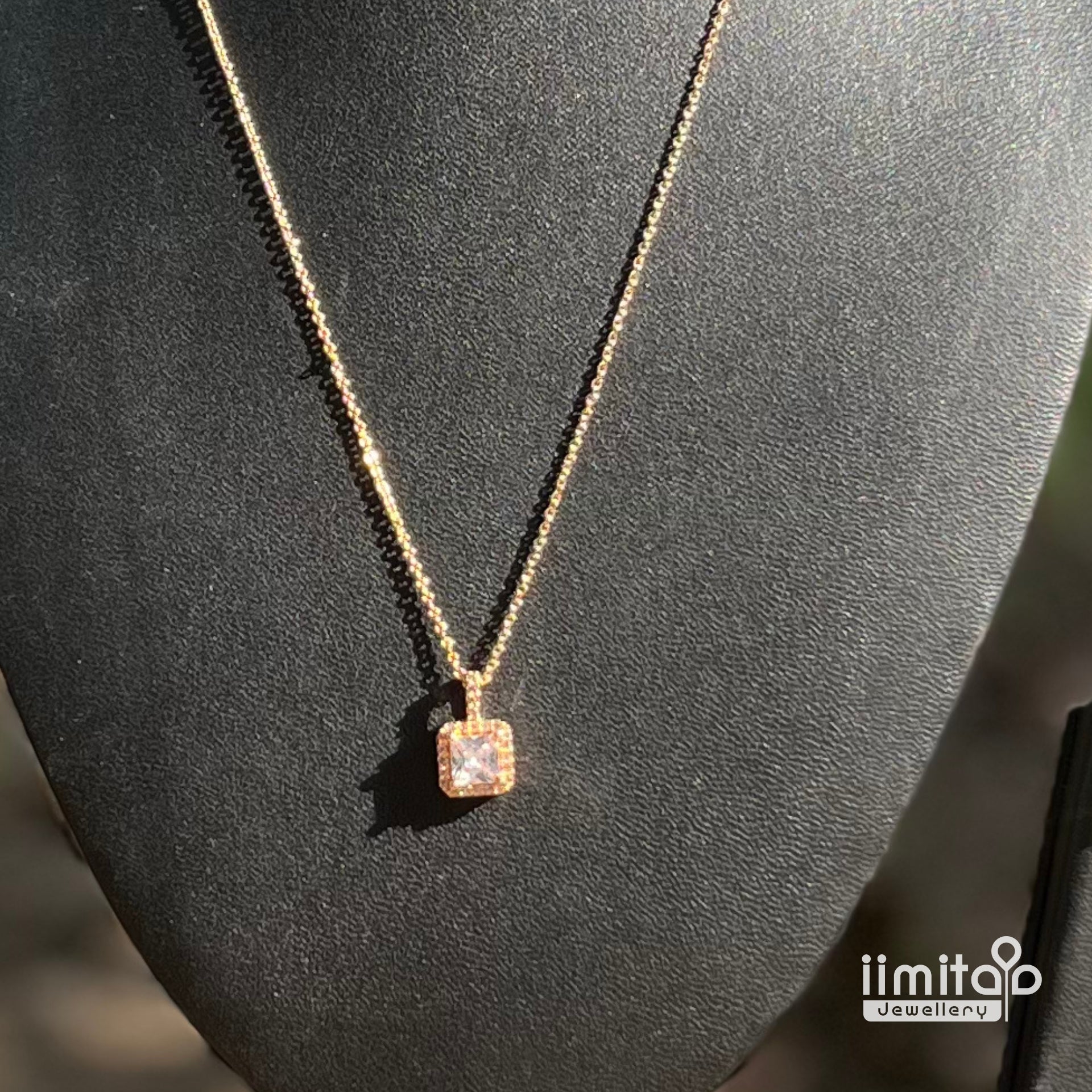 Elevate your style with this elegant imitation jewellery set, featuring a delicate gold-plated chain and matching earrings, each adorned with a dazzling square-shaped pendant. With its shimmering stonework and sleek design, this set is perfect for adding a touch of sparkle to festive outfits, parties, and special occasions.