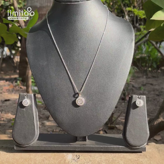 Radiate modern charm with this graceful imitation jewellery set, featuring a sleek silver-tone chain and matching earrings. The set is highlighted by a classic circular pendant adorned with sparkling stones, offering a sophisticated and timeless look perfect for parties, festive occasions, or everyday elegance.