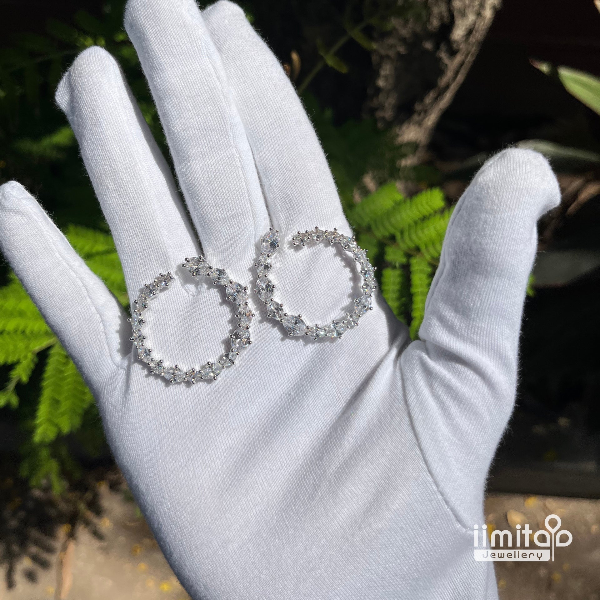 Elevate your everyday elegance with these stunning silver-tone imitation hoop earrings, designed with a sparkling floral crystal arrangement. Lightweight yet eye-catching, these hoops mimic the brilliance of real diamonds without the hefty price tag. Perfect for festive occasions, weddings, or simply to glam up your daily outfits!