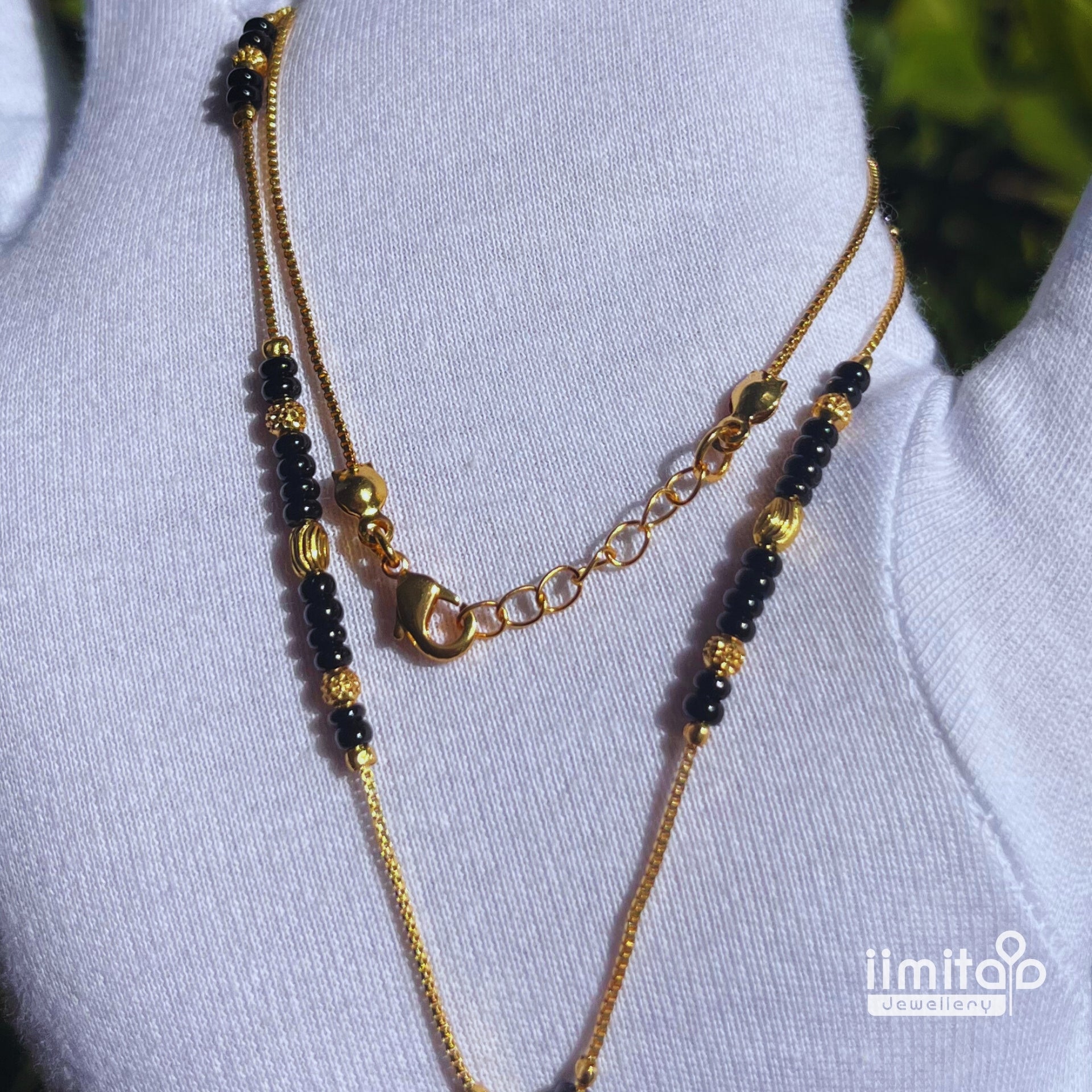 Gold-plated imitation mangalsutra with classic black beads
