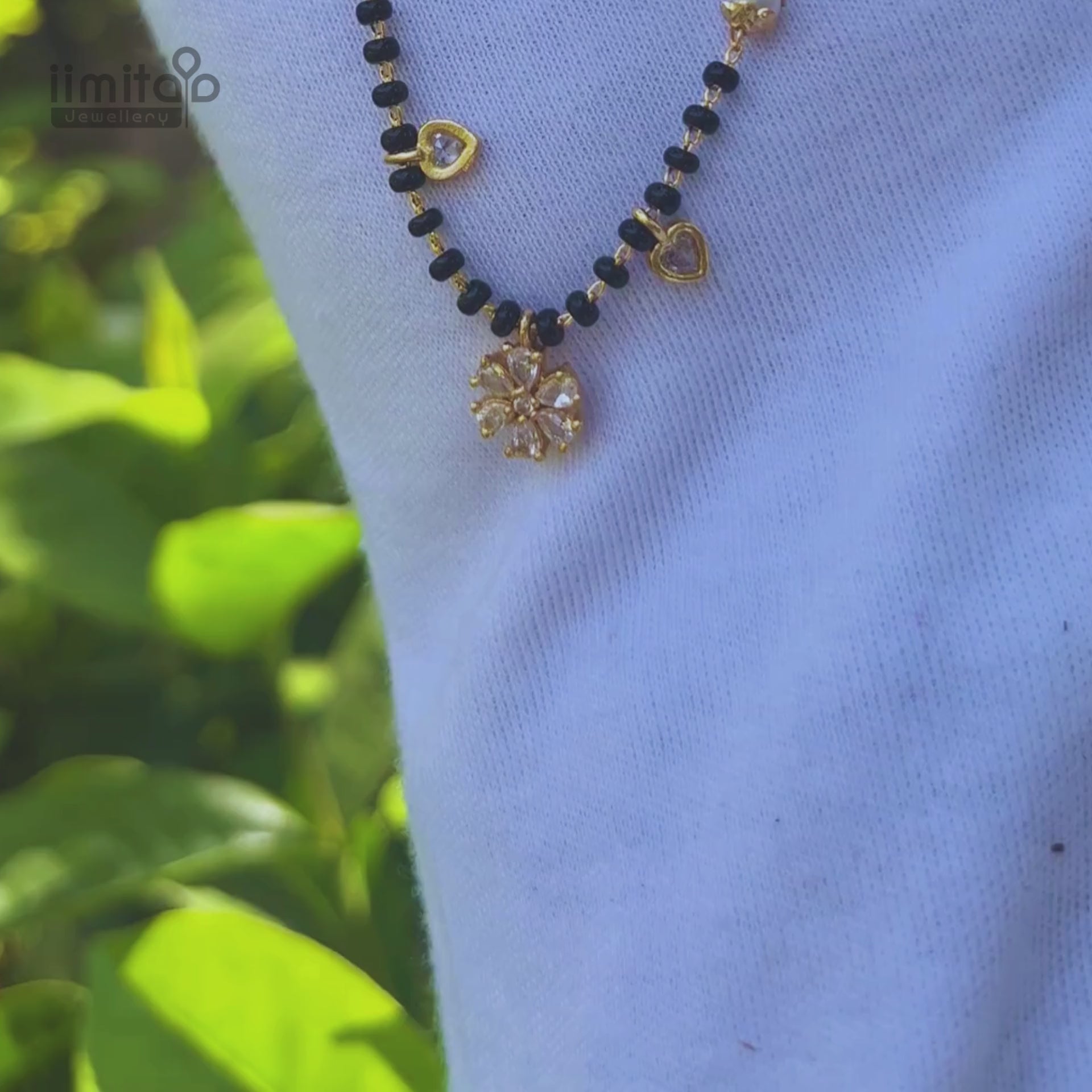 Gold-tone imitation mangalsutra with floral and heart detailing